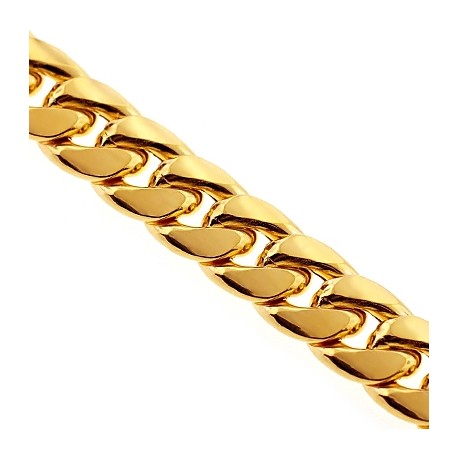 Bold and handsome, our hollow miami cuban link chain will suit his sophisticated style! It's expertly crafted from Italian 10k yellow gold, and highly polished for brilliantly shiny finish. The 10k yellow gold chain measures 7.5 mm in width, and available in length of 28, 30, 32, 34, 36 or 38 inches. Its weight varies from 35 to 50 grams. It is also secured by a user-friendly lobster claw clasp. Powerful and meaningful look, this men's gold necklace is just his style!