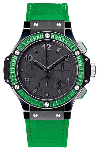 Bezel: Black PVD White Gold set with 48 Green Baguette Tsavorites