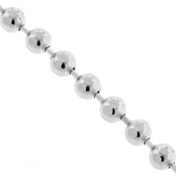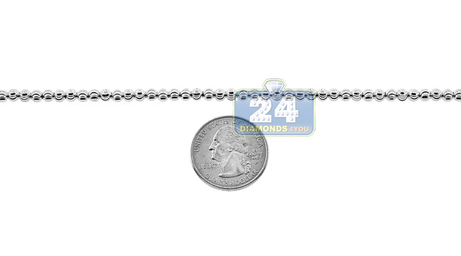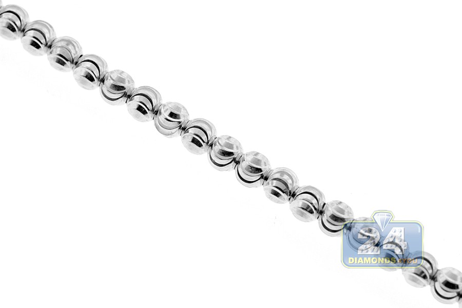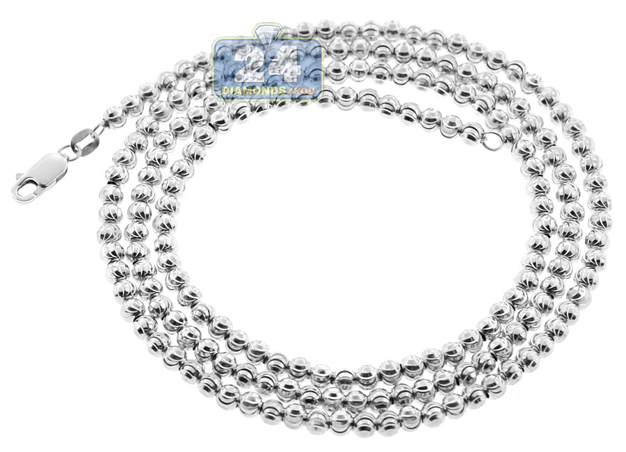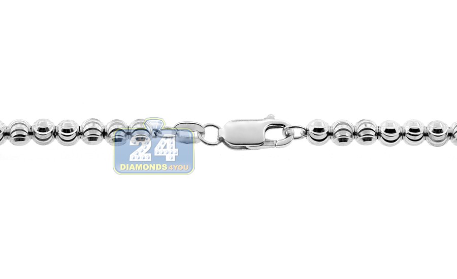 Italian 10K White Gold Moon Cut Bead Mens Necklace 4 mm
