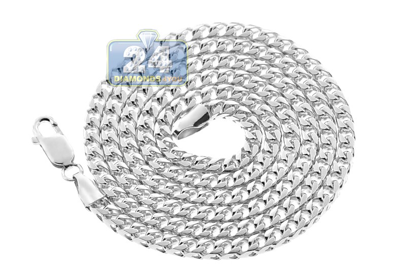 Italian 10K White Gold Solid Franco Mens Chain 3.5 mm