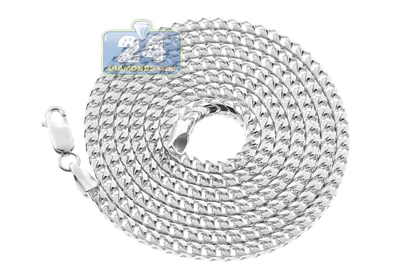 Italian 10K White Gold Solid Franco Mens Chain 3 mm