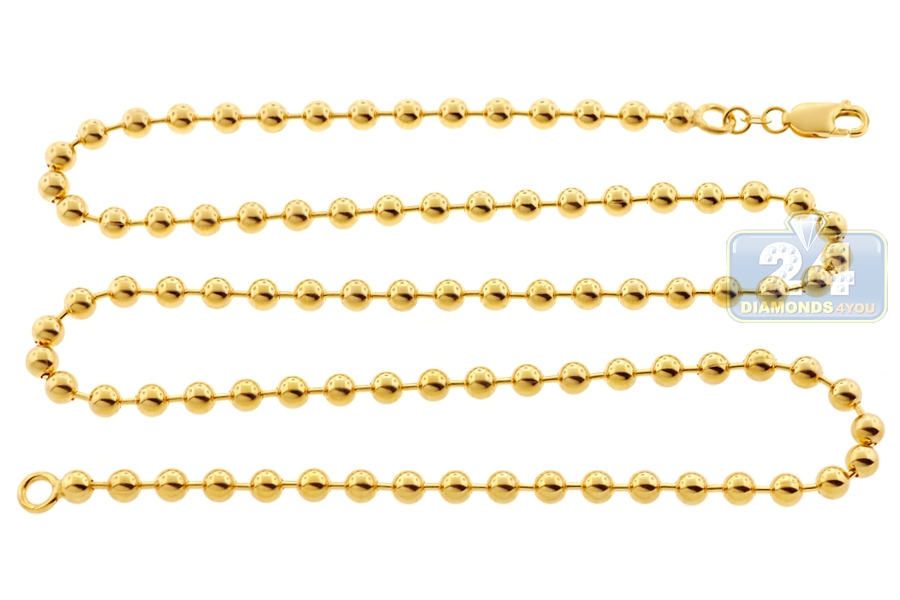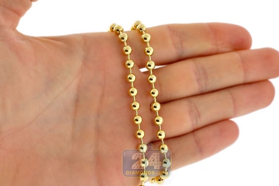Italian 10K Yellow Gold Army Bead Ball Mens Chain 5 mm