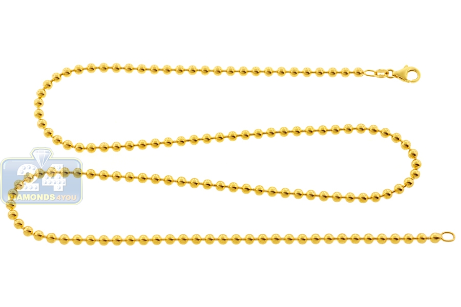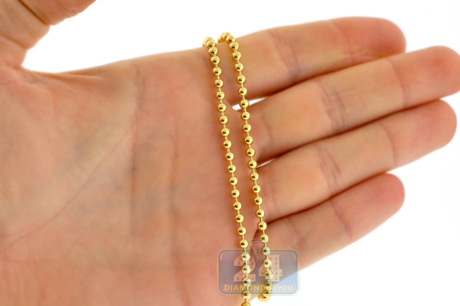 Italian 10K Yellow Gold Smooth Bead Mens Army Chain 3 mm