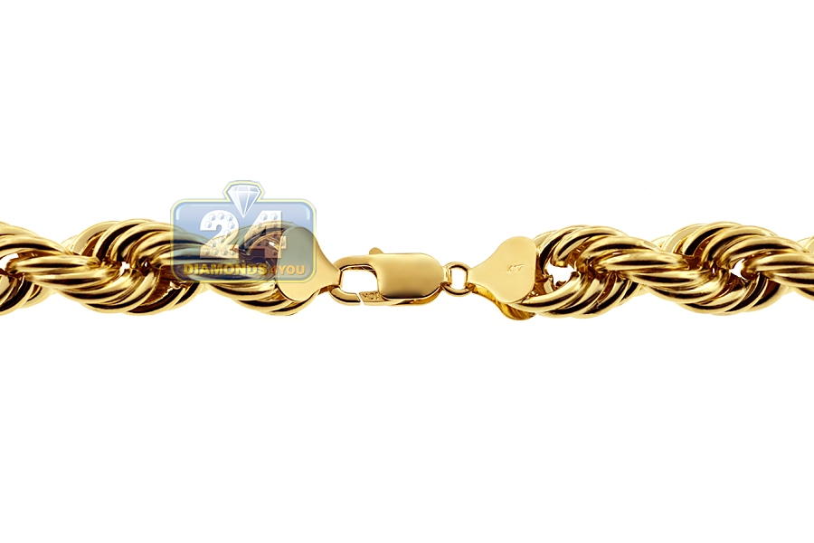 Italian 10K Yellow Gold Hollow Rope Mens Chain 10 mm