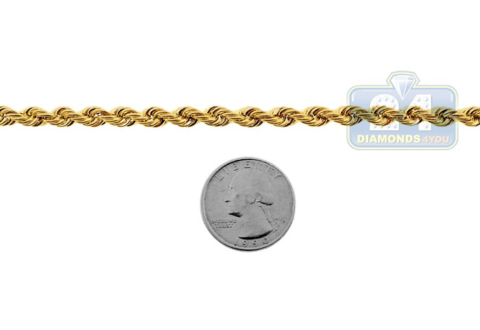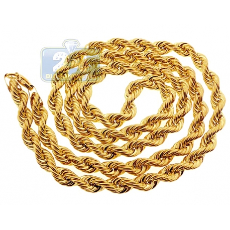 Italian 10K Yellow Gold Hollow Rope Mens Chain 3 mm