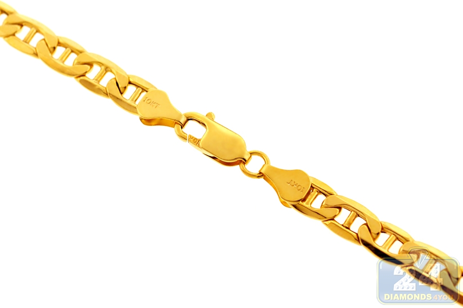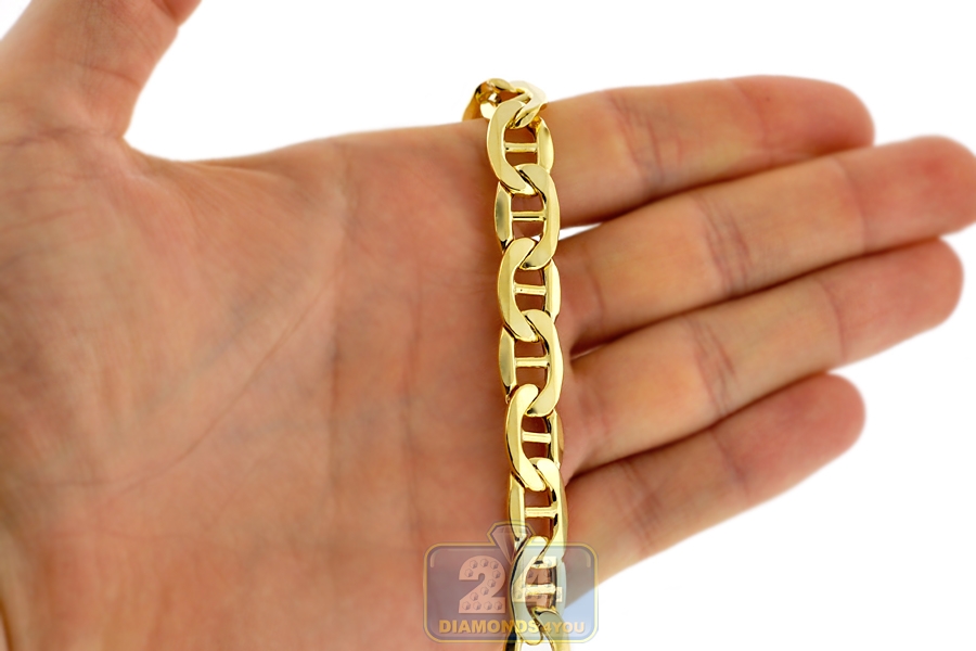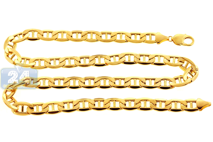 Just imagine all the style options for our wide mariner link chain! Professionally crafted in Italian 10k yellow gold, it features ultra smooth finish for sparkling touch. The yellow gold necklace measures 10.5 mm in width, and is available in 24, 26, 28, 30 or 32 inches in length. It is also secured by the safest and user-friendly lobster claw clasp. Celebrate your sophisticated taste wearing this luxurious men's gold chain!