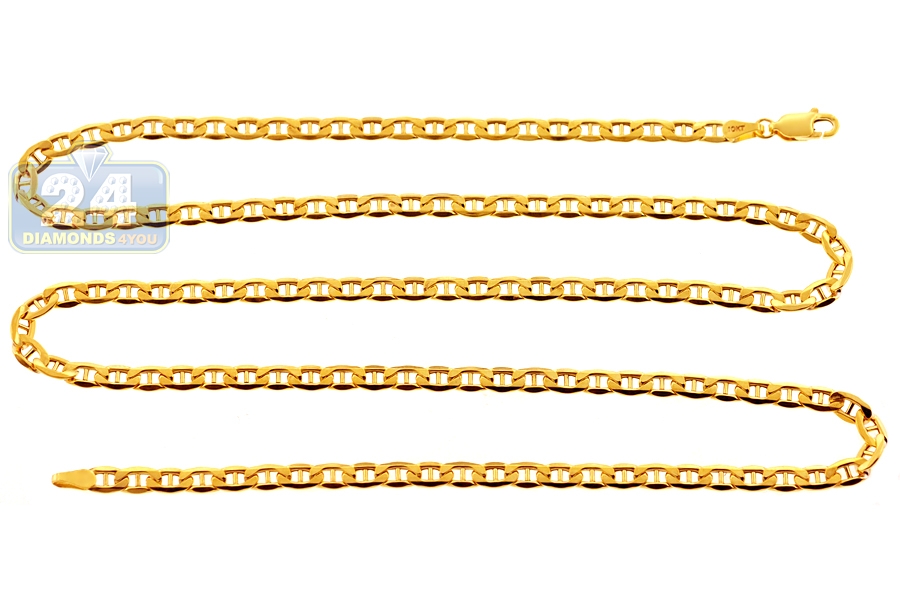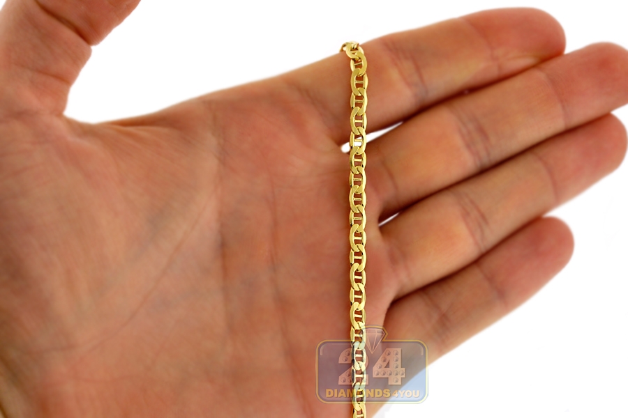 Italian 10K Yellow Gold Mariner Puff Link Mens Chain 4 mm