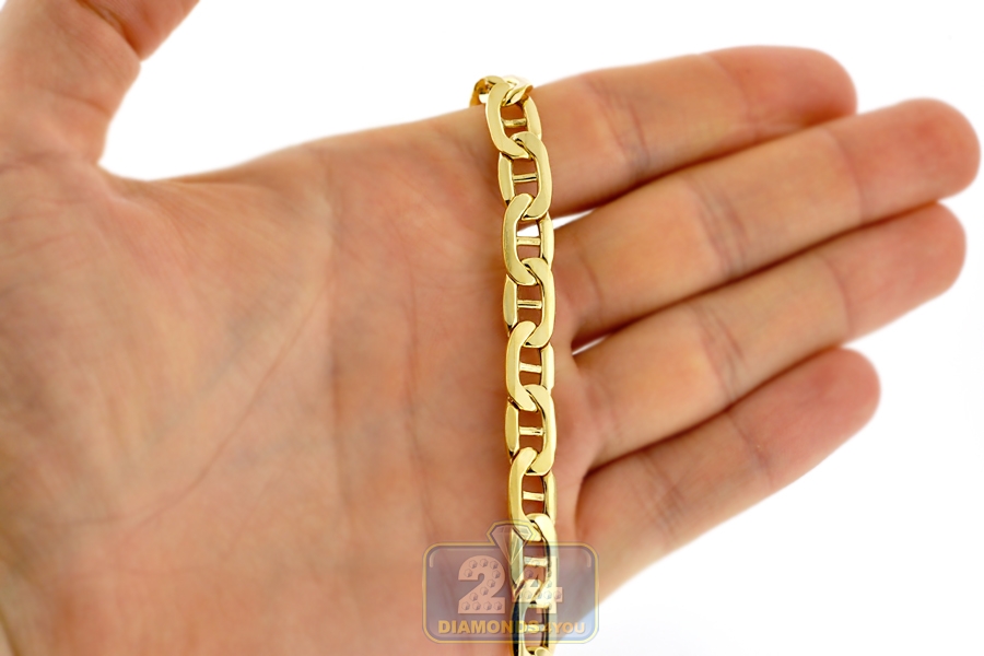 Italian 10K Yellow Gold Hollow Mariner Link Mens Chain 8 mm