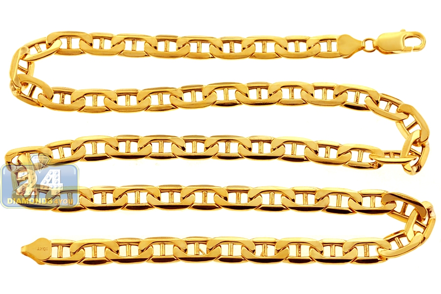 Our incredible mariner link chain goes with almost anything - from a white t-shirt to a royal-blue suit! It is ably created from Italian 10k yellow gold, and highly polished for ultra smooth finish and outstanding glitter. The 10k yellow gold necklace features 8 mm in width, and is available in 24, 26, 28, 30 or 32 inches in length. It is also secured by the safest lobster claw closure. Add a touch of style with this men's gold chain!