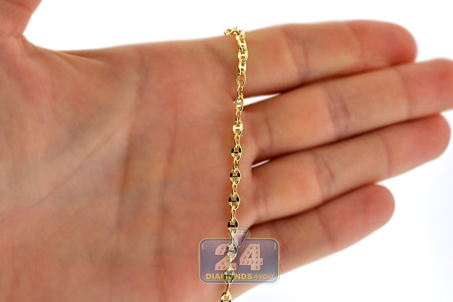 This eye-catching mariner chain creates fashionable style with shimmering appeal! It is crafted in warm 10k yellow gold, and has very smooth finish. The necklace features 3.5 mm in width and available in 20, 22 or 24 inches in length. This gold anchor link chain is lovely alone or paired with a favorite charm!