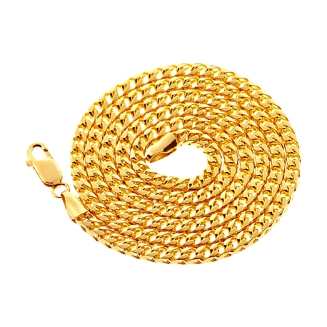 This yellow gold franco chain is a handsome reflection of your perfect taste! It's masterly crafted in hot 10k yellow gold in Italy, and has high-polished shiny finish. The solid gold chain features 3.5 mm in thickness, and available in 24, 26, 30, 36 or 40 inches in length. It's secured by a classic lobster clasp. Our men's gold necklace will be a great addition to your jewelry collection!