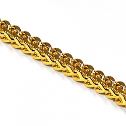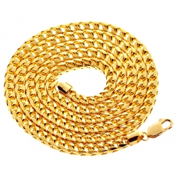 Stylish and masculine, this yellow gold franco necklace designed for handsome men. Having a great looking durable design, this chain is made of solid 10k yellow gold with high-polished finish. Men's gold chain measures 5 mm in width, and available in the length of 30, 32, 36 or 40 inches in length. A striking heavy-weight solid gold chain that can be worn on dressy occasions or everyday!