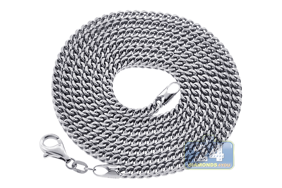 Italian 14K White Gold Hollow Franco Mens Chain 2.9 mm