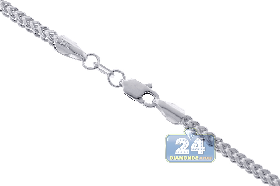 Our white gold franco chain is an exceptional choice to show off your wardrobe of classic style! Masterly manufactured from Italian 14k white gold, it features brilliantly smooth finish. It measures 2.9 mm in thickness, and available in length of 28, 30, 32, 34, 36, 38 or 40 inches. And the 14k gold necklace is secured with a comfortable lobster claw closure. This men's gold chain is wonderful on its own or paired with a pendant!