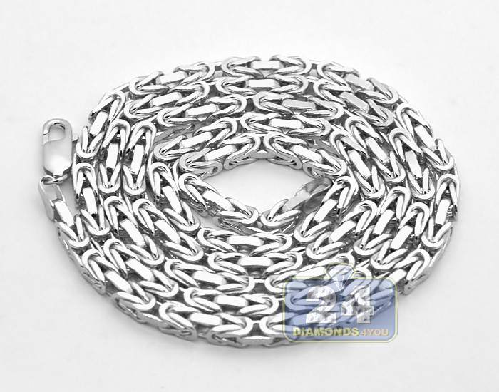 Italian 14K White Gold Solid Byzantine Mens Chain 3.5 mm