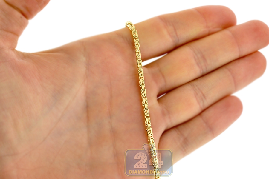 Our fabulous square byzantine chain will be an ideal addition to almost everything in your closet! Artfully crafted in Italian 14k yellow gold, it is highly polished for brilliantly smooth finish. The real yellow gold chain measures 2.5 mm in width, and available in 22, 24, 26 or 28 inches in length. It is also secured by a user-friendly lobster claw clasp. This men's gold chain offers a sophisticated look!