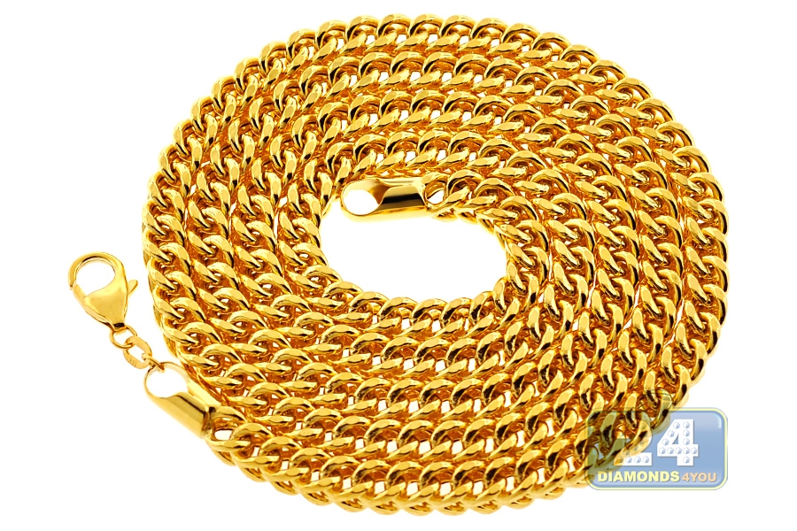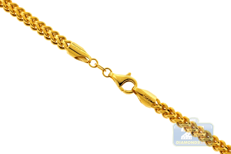 You will appreciate handsome shimmer of our gold franco chain that is ideal for special occasions! Artfully manufactured from 14k yellow gold in Italy, it features highly polished ultra sparkling finish. The 14k yellow gold chain measures 24, 26, 28, 30 or 32 inches in length and 5.5 mm in thickness. For security it's closed with a comfortable lobster claw clasp. Make an unforgettable statement with this men's gold necklace glistening around the neck!