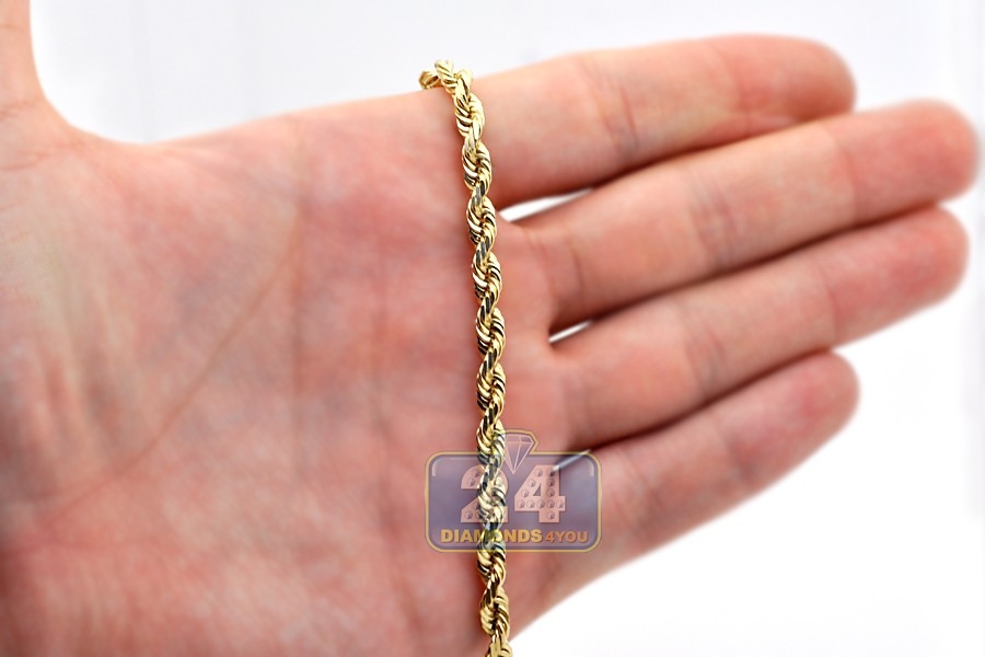 Available in 24, 26, 28 or 30 inches in length, 5 mm in width, this heavy-weight solid gold rope chain adds a touch of handsome appeal to any outfit! It's artfully made of Italian 14k yellow gold, and highly polished to very sparkling finish. This real gold necklace has a secure lobster clasp to ensure that it stays in place all day! Choose men's gold rope chain to make a chic statement!