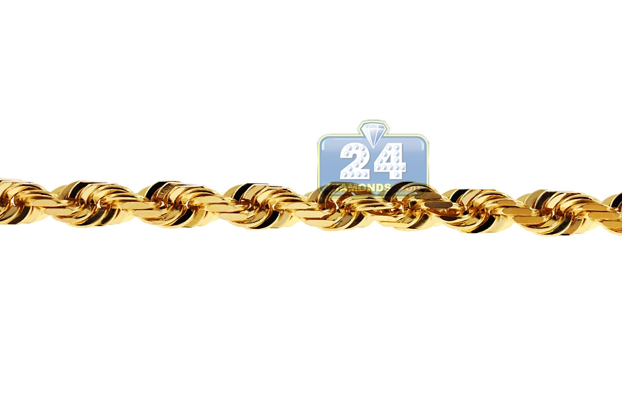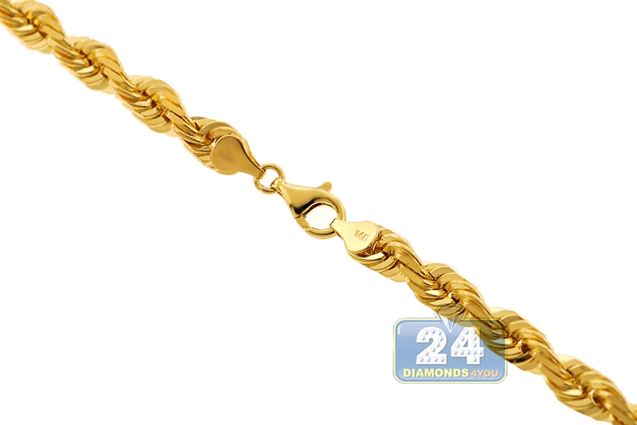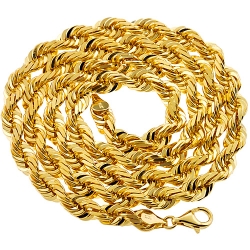 Italian 14K Yellow Gold Solid Rope Mens Chain 7 mm