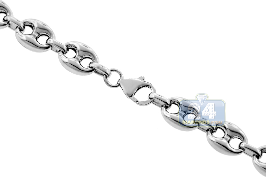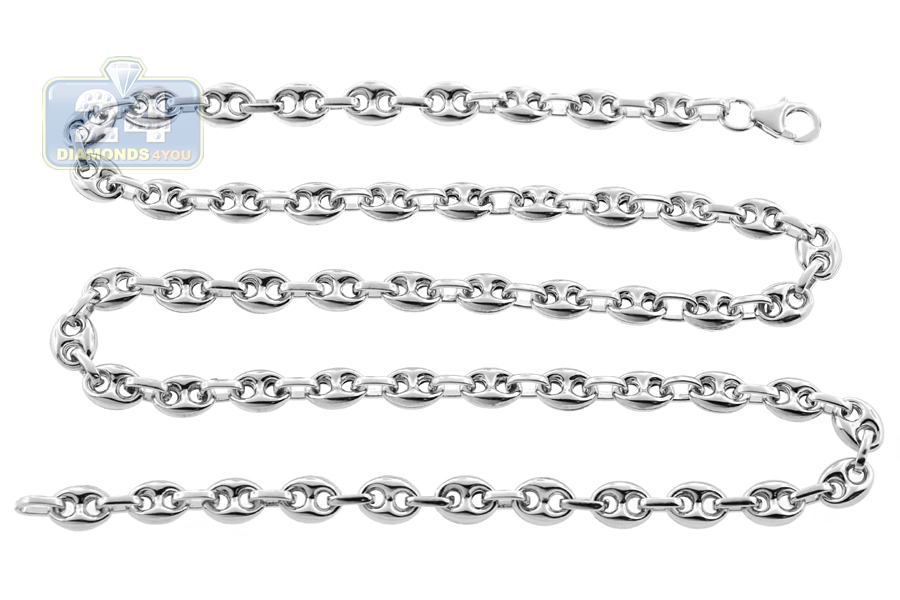 Italian 925 Silver Anchor Puff Link Mens Necklace 6.5 mm