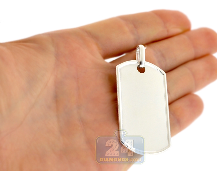 Enhance your style with our sparkling dog tag pendant. It is gorgeously produced from Italian 925 sterling silver and covered with white rhodium. This men's silver pendant measures 58 mm in length and 28 mm in width. This classic message pendant adds personality to any outfit! Please note that no return is possible if the pendant is engraved per your request.