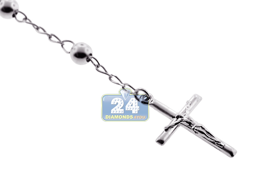 Sterling Silver Rosary Beads Cross Necklace 6 mm 24 Inches