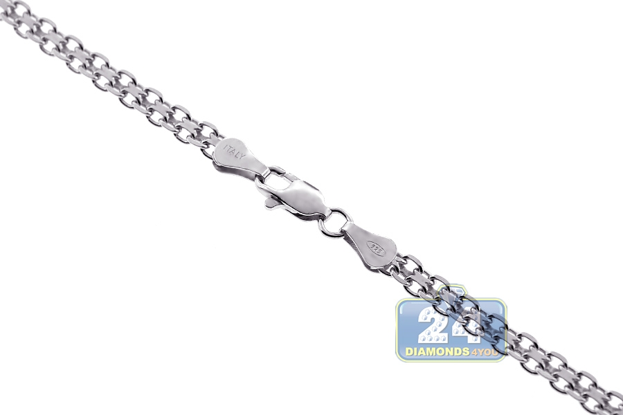 Our elegant bismark mesh chain has luxurious appeal! It is expertly crafted in 925 sterling silver, and covered with white rhodium that helps prevent tarnishing and gives a bright color. It features 3 mm in width, available in 18, 20 or 22 inches in length; and secures with a safe lobster claw clasp. This piece is perfect for everyday wear or a special occasion!