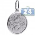 Italian Sterling Silver Capricorn Zodiac Sign Round Pendant