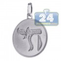 Our Jewish Chai round pendant is a great combination of a meaningful symbol and style! This piece is professionally handcrafted in cool 925 sterling silver, and covered with white rhodium that helps prevent tarnishing and gives a bright color. Our Jewish silver pendant features 26 mm in hanging length and 18 mm in width. This amazing medallion is a great way to display your faith! We have matching chains available as well.