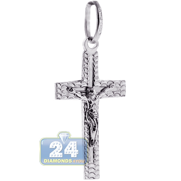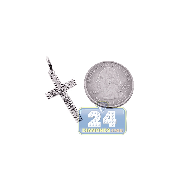 Celebrate religion with our crucifix cross pendant! It is professionally crafted in fine 925 sterling silver, and covered with white rhodium that helps prevent tarnishing and gives a bright color. The religious silver pendant features 36 mm in hanging length and 16 mm in width. Eye-catching look!