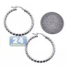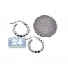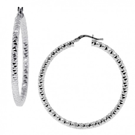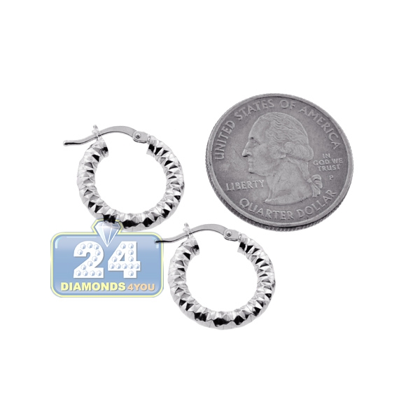 Italian 925 Silver Diamond Cut Round Hoops Womens Earrings 3 mm
