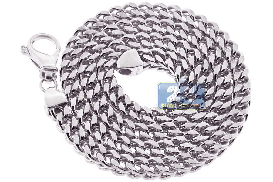 Our bold hollow franco chain is affordable luxury for every day! It's masterly produced from precious 925 sterling silver, and covered with white rhodium that helps prevent tarnishing and gives a bright color. The necklace measures 7 mm in width, available in 24, 28 or 30 inches in length; and secures with a safe lobster claw clasp. This statement-making franco chain is one you will treasure forever!
