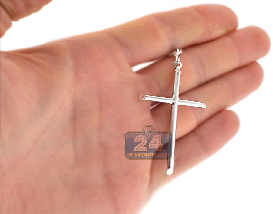 Our elegant cross pendant will serve as a constant reminder of your devotion! It is expertly handmade of cool 925 sterling silver, and covered with white rhodium that helps prevent tarnishing and gives a bright color. This men's cross pendant measures 57 mm in hanging length and 31 mm in width. Complete your look with this sparkling large cross!