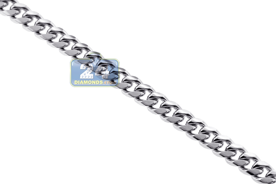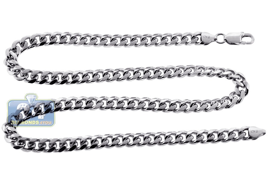 Our impressive miami cuban link chain makes a handsome statement! It is professionally handmade of 925 sterling silver, and covered with white rhodium that helps prevent tarnishing and gives a bright color. This piece of jewelry measures 7 mm in width, 20-36 inches in length; and secures with a safe and user-friendly lobster claw clasp. Irreplaceable addition to your chain collection!