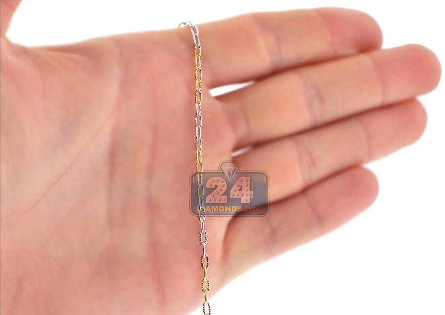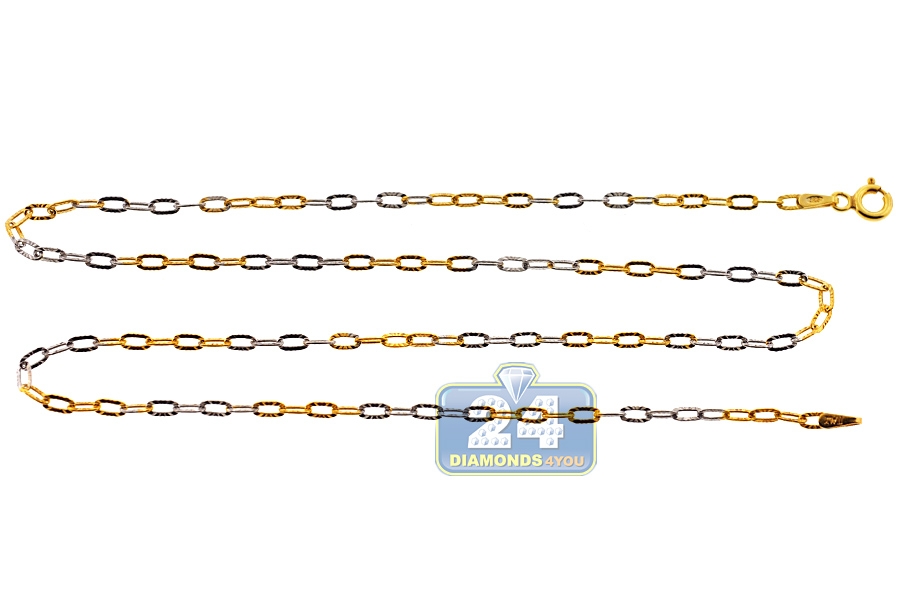 Italian Two Tone Silver Fancy Diamond Cut Link Womens Chain 2.5 mm