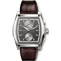 Men's IWC Da Vinci Collection Chronograph Movement 18K White Gold Case Brown Crocodile Band Watch Reference #IW376410