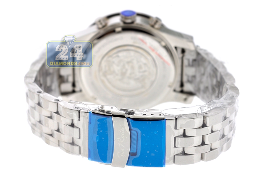 Truly awesome men's diamond watch J2030 from famous 2000 collection designed by Joe Rodeo. The case and bracelet are made of durable stainless steel, and highly polished for smooth shimmering finish. The dial is colored in black, with three white mother-of-pearl sub-dials. They're protected by scratch resistant mineral crystal. The timepiece is also equipped with Swiss quartz movement that features chronograph and date functions. The package is completed with two extra bands of different colors. Handsome watch for any occasion!