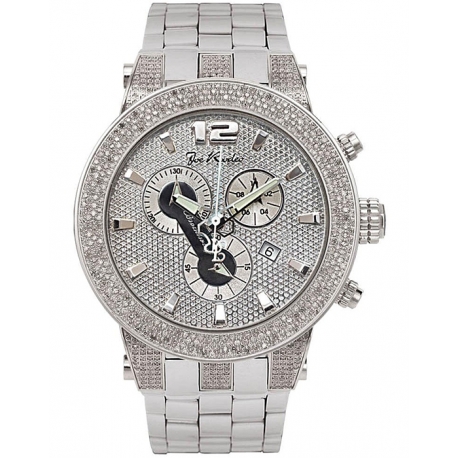 Choose this handsome diamond watch for men by Joe Rodeo JRBR18 from Broadway collection. It has pave dial with silver sub-dials, well-made stainless steel case, bracelet and bezel that encrusted with 5.00 carats of genuine white diamonds. The also comes with two extra straps of various colors. For accurate time, it is equipped with high-quality Swiss quartz movement with chronograph and date functions. 24diamonds.com is official dealer of Joe Rodeo, so you will get 1-year factory warranty and professional after-warranty service.
