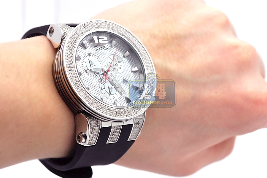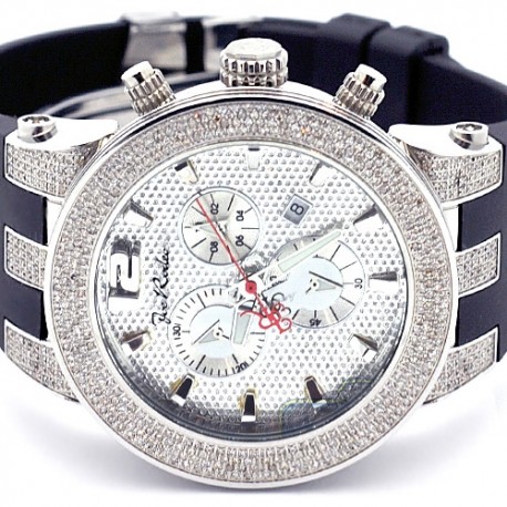 Get this magnificent diamond watch for men by Joe Rodeo JRBR2 from Broadway collection. It has pave dial with silver sub-dials, stainless steel case and bezel, encrusted with genuine white diamonds totaling 5.00 carats. The watch has genuine black rubber band, and comes with two extra straps of different colors. For accurate time, it features high-quality Swiss quartz movement with chronograph and date functions. 24diamonds.com is official dealer of Joe Rodeo, so you will get 1-year factory warranty and professional after-warranty service. Please check the video below for more details.