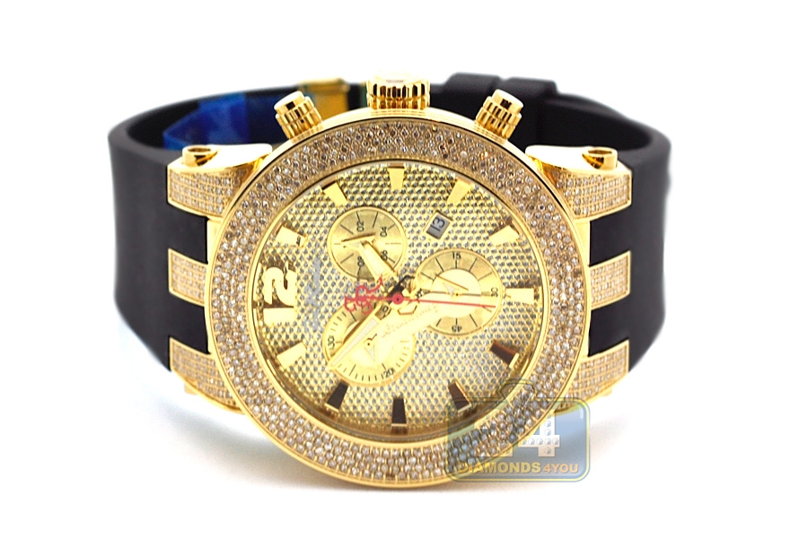 Get this amazing diamond watch for men by Joe Rodeo JRBR3 from Broadway collection. It has pave dial with yellow sub-dials, yellow gold plated stainless steel case and bezel, encrusted with genuine white diamonds totaling 5.00 carats. The watch has genuine black rubber band, and comes with two extra straps of different colors. For accurate time, it features high-quality Swiss quartz movement with chronograph and date functions. 24diamonds.com is official dealer of Joe Rodeo, so you will get 1-year factory warranty and professional after-warranty service. Please check the video below for more details.