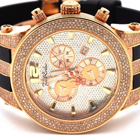 Amaze the wrist with this stunning diamond watch for men by Joe Rodeo JRBR6 from Broadway collection. It has pave dial with rose sub-dials, rose gold plated stainless steel case bezel, encrusted with genuine white diamonds totaling 5.00 carats. The watch goes with genuine black rubber band and two extra straps of different colors. For accurate time, it features high-quality Swiss quartz movement with chronograph and date functions. 24diamonds.com is official dealer of Joe Rodeo, so you will get 1-year factory warranty and professional after-warranty service. Please check the video below for more details.