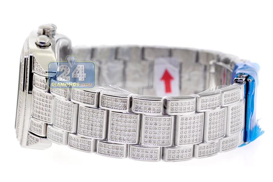 Dream about this lady's iced out diamond watch by Joe Rodeo JCHE5 from Chelsea collection. It features silver pave dial with white sub-dials, high-polished stainless steel case, bracelet and bezel, all encrusted with 13.00 carats of genuine white diamonds totaling. The watch comes with two extra bands of different colors. For accurate time, it is equipped with high-quality Swiss quartz movement with chronograph and date functions. 24diamonds.com is official dealer of Joe Rodeo, so you will get 1-year factory warranty and professional after-warranty service. Please check the video below.