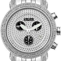 Lovely men's diamond watch by Joe Rodeo JCL16 from Classic collection. It features silver pave dial with black sub-dials, durable stainless steel case, and diamond bezel encrusted with natural white diamonds totaling 1.75 carat. The watch has stainless steel bracelet, and also comes with two extra bands of different colors. For accurate time, it is equipped with high-quality Swiss quartz movement with chronograph and date functions. 24diamonds.com is official dealer of Joe Rodeo, so you will get 1-year factory warranty and professional after-warranty service.