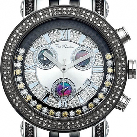 Handsome men's diamond watch by Joe Rodeo JCL43(WY) from Classic collection. It features multicolored silver dial with three black sub-dials, two-tone stainless steel case, and diamond bezel encrusted with natural white diamonds totaling 1.75 carat. The watch has stainless steel bracelet, and also comes with two extra bands of different colors. For accurate time, it is equipped with high-quality Swiss quartz movement with chronograph and date functions. 24diamonds.com is official dealer of Joe Rodeo, so you will get 1-year factory warranty and professional after-warranty service.