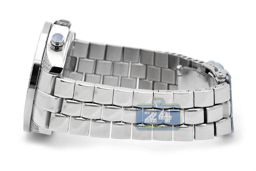 Stylish men's diamond watch JREM10 from new Empire collection designed by Joe Rodeo of New York. The case is produced from durable stainless steel with sparkling finish; its bezel and lugs are amazed with 2.25 carats of genuine white diamonds. Silver pave dial is protected by scratch resistant mineral crystal. The piece also features stainless steel bracelet and two extra straps of different color. It's equipped with Swiss quartz movement that has date and chronograph functions. Ideal diamond watch to show off your style.