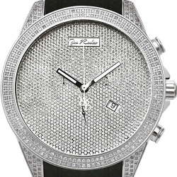 Breathtaking men's diamond watch JREM1 from new Empire collection designed by Joe Rodeo of New York. The case is produced from durable stainless steel with sparkling finish; its bezel and lugs are amazed with 2.25 carats of genuine white diamonds. Silver pave dial is protected by scratch resistant mineral crystal. The piece also features black rubber band with secure pin buckle, and two extra straps of different color. It's equipped with Swiss quartz movement that has date and chronograph functions. Ideal diamond watch to show off your style.