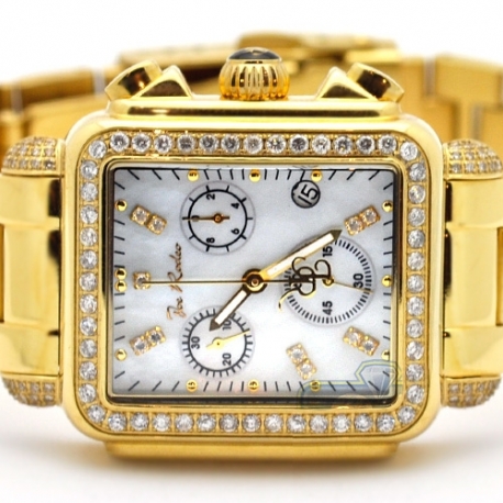 Get this sparkling diamond watch for women by Joe Rodeo JRMD31 from Madison collection. It features yellow gold plated stainless steel case, bracelet and bezel encrusted with one row of genuine white diamonds totaling 2.00 carats. The watch has white mother-of-pearl dial, and comes with two extra bands of different colors. For showing the exact time, it goes with high-quality Swiss quartz movement that has chronograph and date functions. 24diamonds.com is official dealer of Joe Rodeo, so you will get 1-year factory warranty and professional after-warranty service. Please check the video below for more details.