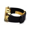 Striking yet stylish men's diamond watch JJM69 from popular Master collection designed by Joe Rodeo of New York. Its case is created from durable stainless steel that covered with long-lasting yellow gold plating; and encrusted with 677 genuine diamonds, all totaling 6.50 carats. The yellow-tone dial with pave pattern is secured by scratch resistant mineral crystal. It also comes on black rubber band, and two extra straps of different colors. The timepiece has Swiss quartz movement with date and chronograph functions. Luxurious diamond watch!