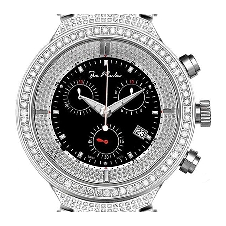 Get this magnificent diamond watch for men by Joe Rodeo JJM19 from the most popular Master collection. It features durable stainless steel case, bracelet and bezel that encrusted with genuine white diamonds totaling 7.35 carats. The watch features black dial with three sub-dials, and comes with two extra straps of different colors. For accurate time, it is equipped with reliable Swiss quartz movement that has chronograph and date functions. 24diamonds.com is official dealer of Joe Rodeo, so you will get 1-year factory warranty and professional after-warranty service. Please check the video below for more details.