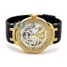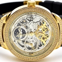 Amaze your wrist with this skeleton diamond watch for men by Joe Rodeo JJM80 from the most popular Master collection. The case and bezel are made of stainless steel covered with long-lasting yellow gold plating, and encrusted with genuine white diamonds totaling 2.20 carats. The timepiece features skeleton dial that beautifully showcases the work of reliable Japan automatic movement. It also comes on black rubber band and with two extra straps of different colors. 24diamonds.com is official dealer of Joe Rodeo, so you will get 1-year factory warranty and professional after-warranty service. Please check the video below for more details.